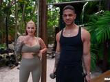Cubbi Thompson wants to show off a bit, so she makes sure to warm up before the hot guy she invited, Mike Ox, shows up at the outdoor gym. Cubbi's also showing off her big fake tits in her tight little workout bra, and Mike appreciates the view. She takes her top off to spot him with her boobs in his face, then sucks and titty fucks him while he does his reps. Cubbi gets her workout in riding his dick, then sucks him till he shoots a record-breaking load!
