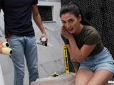 Hot but mean brunette Megan Mistakes's bathroom update hasn't been going too smoothly, and she isn't shy to hide her frustration at her BF's lack of handyman skills or even his camera operating as she calls in a contractor. Megan is all smiles when Parker Ambrose gets there, giggling and flirting and touching his muscles. She's got a different project in mind for him as she takes out his cock and sucks it. Parker puts in some hard work licking and fucking Megan while her man just has to watch and film them!