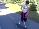 Let's go skateboarding with the young and talented Ariel Rebel! She's out on the road with the camera man and he's filming her as she wears pants and a bikini top while boarding around. She looks adorable and fun as she shows her limited boarding skills.